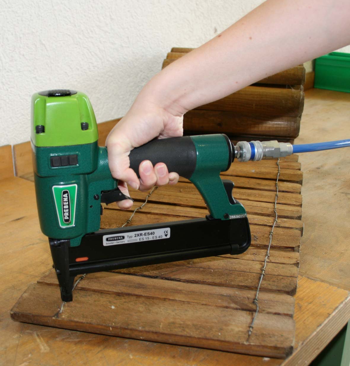 Der Druckluftnagler 2XR-ES40 für die 5,95 mm breiten ES-Klammern eignet sich optimal für alle Anwendungen rund ums Haus. Sei es für die Befestigung von Profilbrettern und Paneelen, oder für die Montage von Schränken und Regalen. Auch im Polsterbereich mit schwereren Stoffen kommt der 2XR-ES40 Klammernagler optimal zum Einsatz. Durch den dezenten, aber ausreichend breiten Rücken lassen sich die unterschiedlichsten Stoffe dekorativ fixieren. Dabei beschränkt sich die Anwendung nicht nur auf den Innenbereich: Überall dort, wo ein Nagelkopf nicht ausreicht, wie z. B. im Draht- oder Zaunbau, überzeugt die ES-Klammer mit ihrer praktischen und zuverlässigen Verbindung.