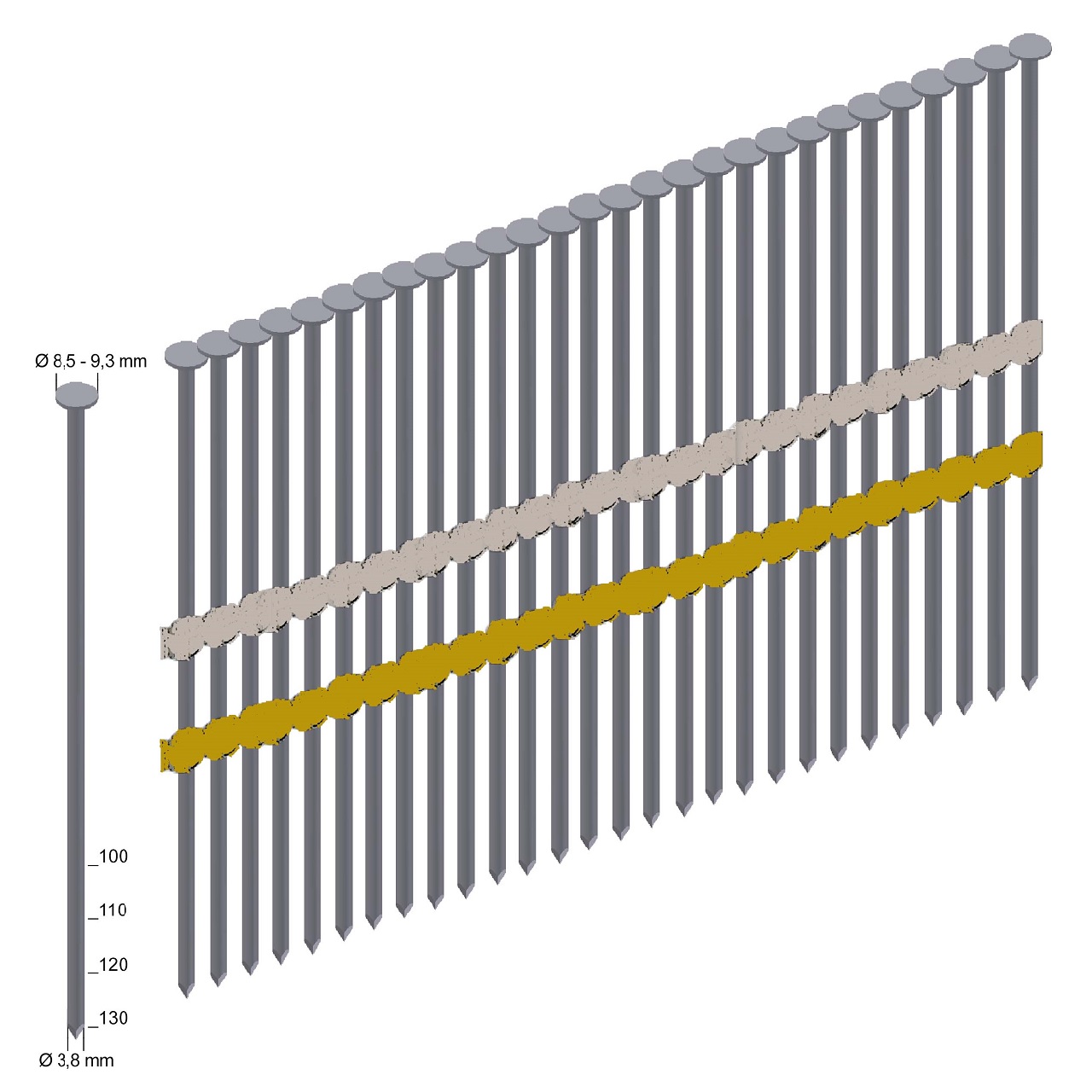 Produktinformationen "RK38/130NK Rundkopf-Streifennägel verzinkt Glattschaft"
