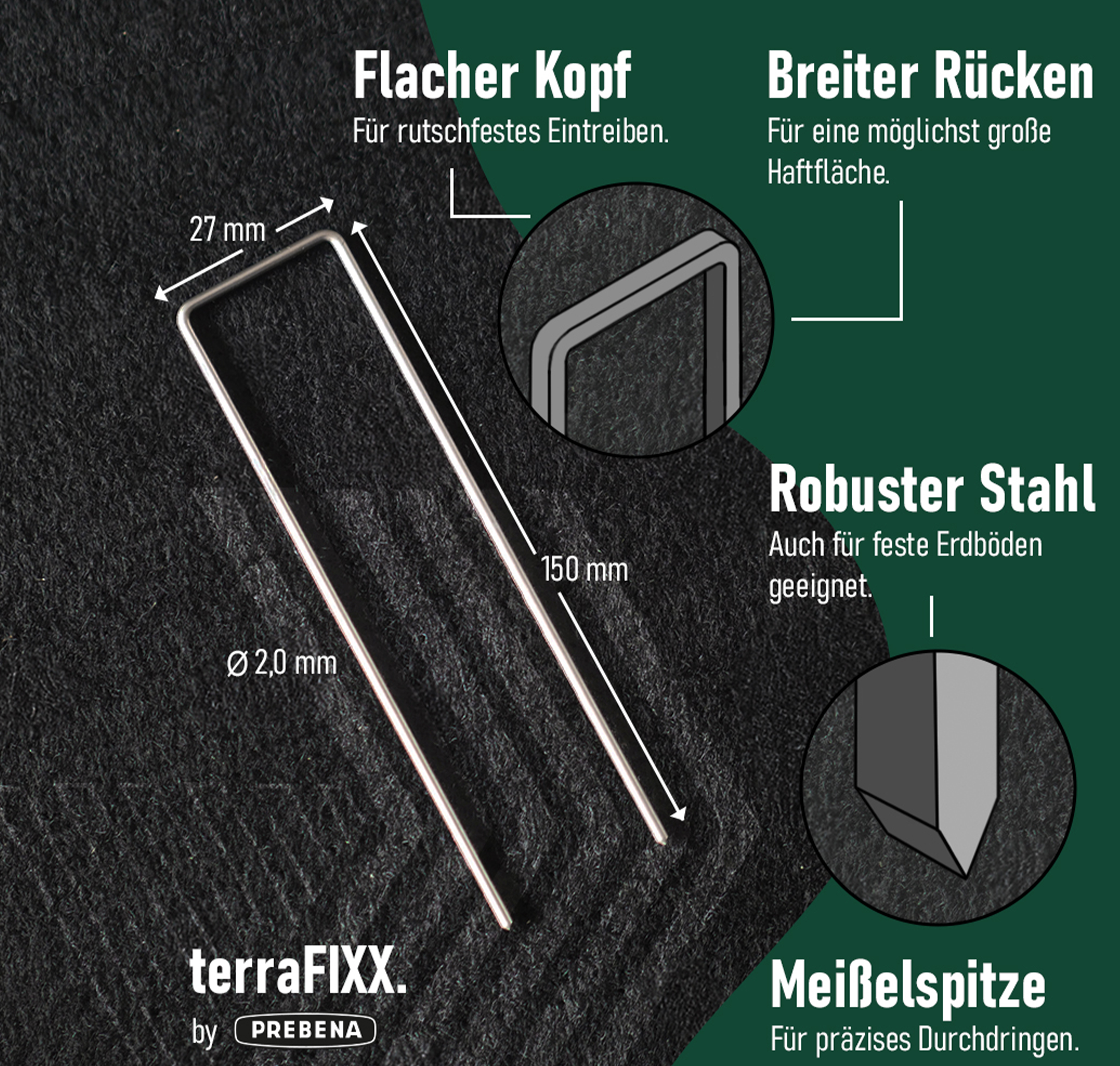 Fixieren von Gartenschläuchen, Bewässerungssystemen, Unkrautvlies, Gartenlandschaftsbau, Gärtnereien, Gittern, Netzen, Zäunen, Pflanzen (Rank Hilfen), Roll- und Kunstrasen, Camping, Angeln, Tiergehege und Ausläufe, Dekoration und vieles mehr.